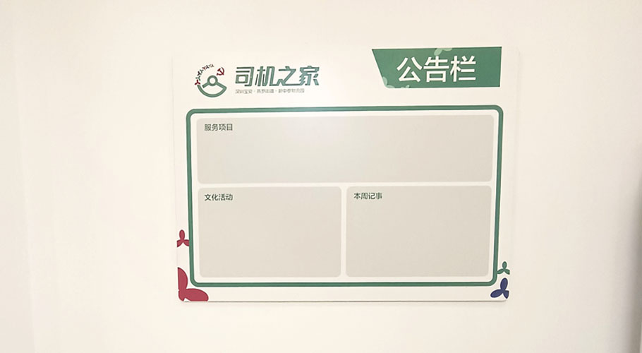 深圳市勤蜂廣告設(shè)計(jì)有限公司,應(yīng)部門單位的規(guī)劃需求,勇于當(dāng)擔(dān),負(fù)責(zé)承接深圳市寶安區(qū)松崗,沙井、福永、航城、西鄉(xiāng)和新安街道等片區(qū)中大型物流園司機(jī)之家的裝飾、廣告物料、司機(jī)文化墻、門頭招牌、形象背景墻、黨建文化墻、宣傳欄的制作和施工。