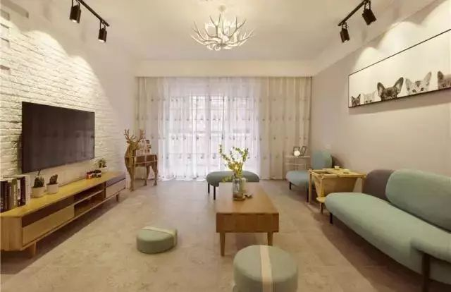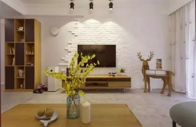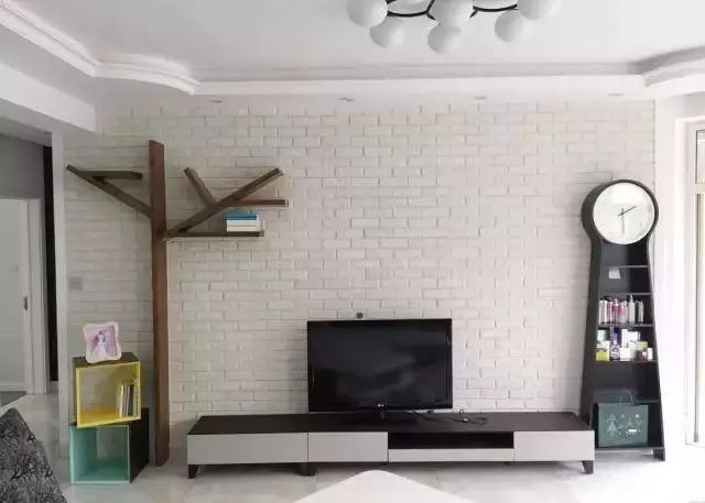喜歡現(xiàn)代工業(yè)風的年輕人,直接刷白的電視墻顯得太單調了,那么可以考慮刷一面文化磚電視墻,瞬間讓客廳顯得文藝精致不少。